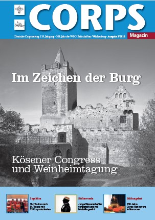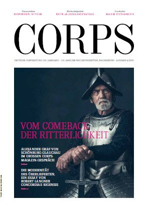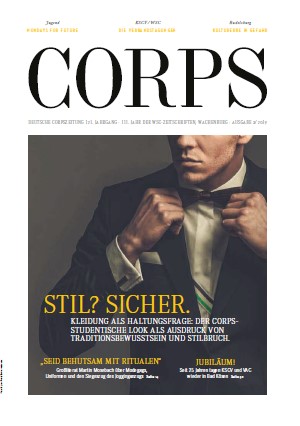 20 Die Greta-Fage: Mondays for Future! 21 Der CORPS Wiesn-Styleguide 22 Rudolstädter Reminiszenzen 24 Öffentlichkeitsarbeit der Corps 26 200 Jahre Borussia Breslau zu Köln und Aachen 28 Corps Altsachsen und Georg-Helm-Preis 30 Rückkehr nach Bad Kösen 32 25 Jahre Rückkehr des Kösener Congresses 33 Interview mit Holger Stahlknecht, dem Innenminister von Sachen-Anhalt, CDU 34 Thiemo von Creytz über die Rudelsburg-Sanierung 35 Besuch bei der Kunstsammlung der EZB 36 Refektorium auf der Wachenburg 38 Ereignisreiche Weinheimtagung 39 Corps gedenken Widerstandskämpfern in Plötzensee 40 Kreise und Kreispolitik 42 Aus den Corps 44 Nachruf Freiherr Wendt-Dieter von Gemmingen 46 Neues vom Büchermarkt