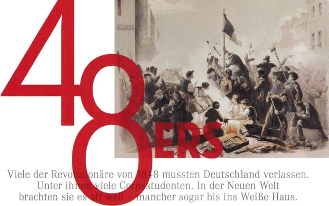 Nach dem Scheitern der Märzrevolution, spätestens Mitte 1849, entwickelte sich eine bis dahin nicht gekannte Auswanderungswelle aus Europa. Besonders traf es das Großherzogtum Baden, in dem die Kämpfe des Jahres 1848 besonders hart gewesen waren: Nach der militärischen Niederschlagung der in ihrer letzten Phase bürgerkriegsähnlichen Badischen Revolution verließen etwa 80.000 Menschen ihre Heimat, was rund fünf Prozent der Bevölkerung entsprach. Schon bald wurden diese Menschen in den USA, aber auch in Australien, "48ers" genannt. Insgesamt verließen kaum weniger als eine halbe Million Deutsche ihre Heimat nach der Revolution von 1848/49 in Richtung USA. Diese 48ers fielen als Gruppe auf, weil sie weit gebildeter waren als durchschnittliche Auswanderer - und auch, weil viele von ihnen über "Schliff" verfügten, den man im Corps - oder einer anderen Korporation - bekam, dazu kam häufig Führungserfahrung im Militär. Wer als 48er erkennbar war, hatte in den USA gute Aufstiegschancen.