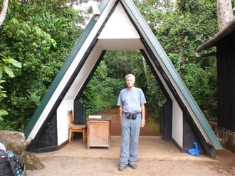 (ehemals Bismarckhütte). Bei diesem Marsch der nicht besonders anstrengend ist, beeindruckt vor allem der Urwald der hier noch diesen Namen verdient. Man würde ohne Machete meist keine 10m vom Weg in den Wald vordringen können. dort bekommt man dann sein Quartier zugewiesen, ca. 10 m2 für 4 Personen.